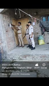 पुलिस ने फरार चल रहे अभियुक्तों के खिलाफ भी कार्रवाई करते हुए रोहित कुमार (पिता: अनिल साहू) एवं अन्य तीन (ग्राम बघात)के घर पर इस्तेहार (नोटिस) तामिल किया।