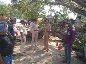 लिस ने वन विभाग और बिजली विभाग को सूचित किया। यातायात बहाल करने के लिए बेनीपुर की वन रेंजर श्वेता मिश्र और एएसआई आहुति कुमारी टीम के साथ सिसौनी पहुंचीं। गिरे हुए विशाल पेड़ को कटर मशीनों की मदद से छोटे-छोटे टुकड़ों में काटने का काम युद्धस्तर पर शुरू किया गया।